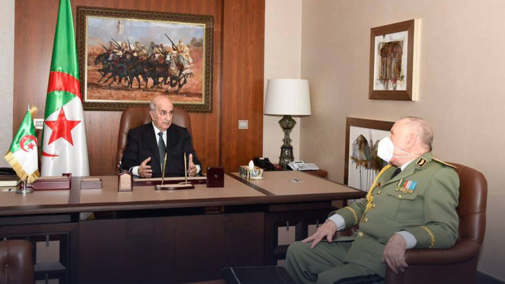 “Le président de la République, Abdelmadjid Tebboune, Chef suprême des forces armées, ministre de la Défense nationale a tenu aujourd’hui une séance de travail avec le chef d’Etat-major de l’Armée nationale populaire